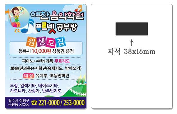 저렴한 가격과 뛰어난 홍보 효과를 자랑하는 종이 자석스티커 제작! 자석스티커제작, 종이 자석전단지제작, 자석홍보물 제작, 자석판촉물 제작을 통해 다양한 업종에 맞춘 효과적인 판촉물을 준비하세요. 학원, 배달 음식점, 세탁소부터 마트, 인테리어 시공업체까지 맞춤형 홍보 가능합니다.