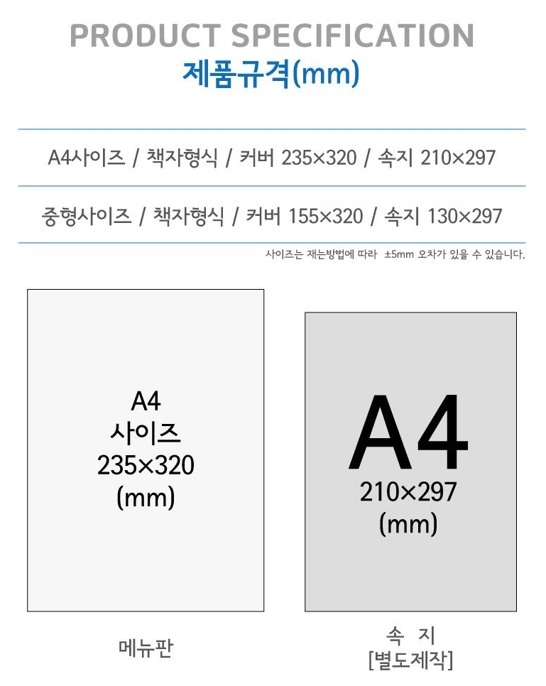 실제 운영 현장에서는 런치 메뉴와 디너 메뉴를 다르게 구성하거나, 주중과 주말 메뉴를 달리 할 때 속지만 교체하면 되어 매우 효율적입니다. 특히 시즌 메뉴나 이벤트 메뉴를 변경하는 매장에서는 이런 유연성이 큰 도움이 됩니다.