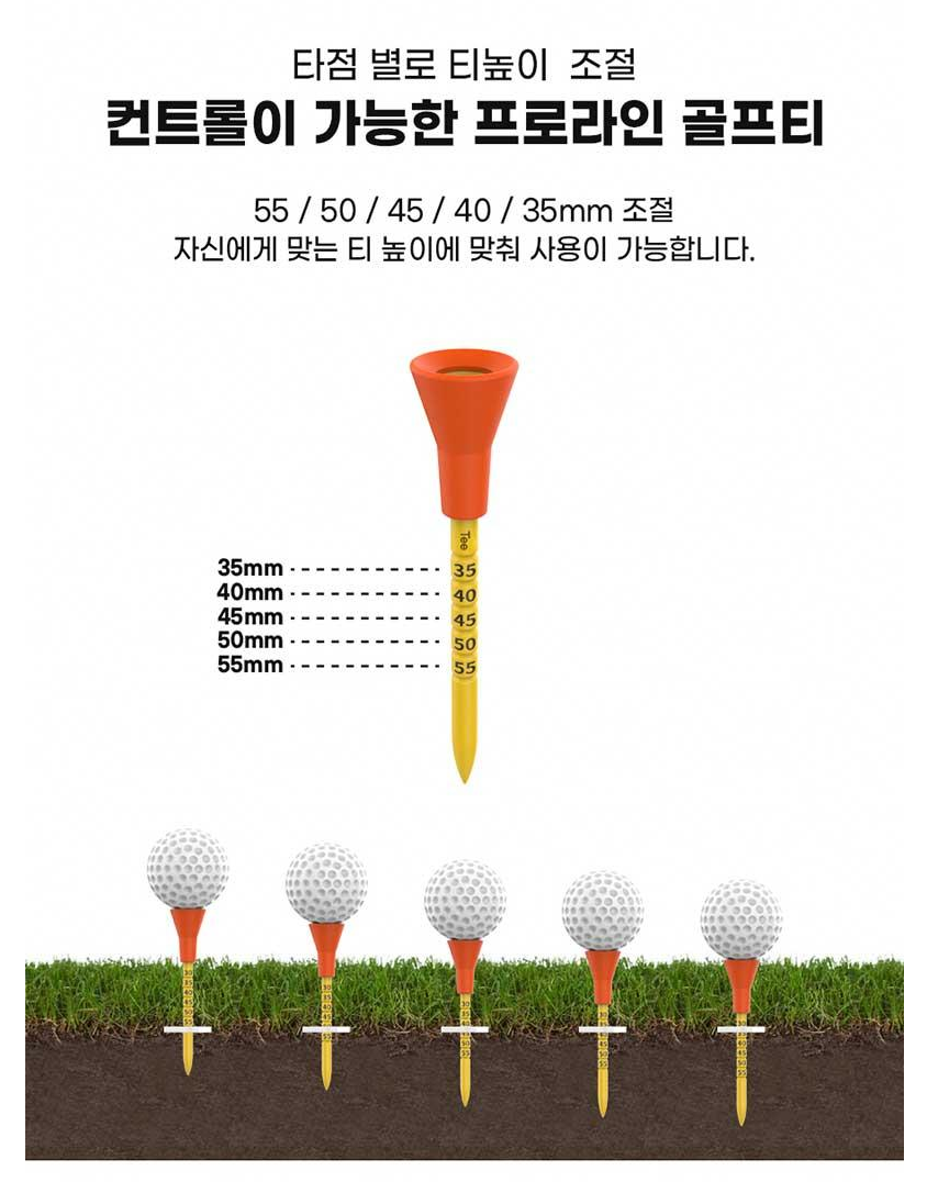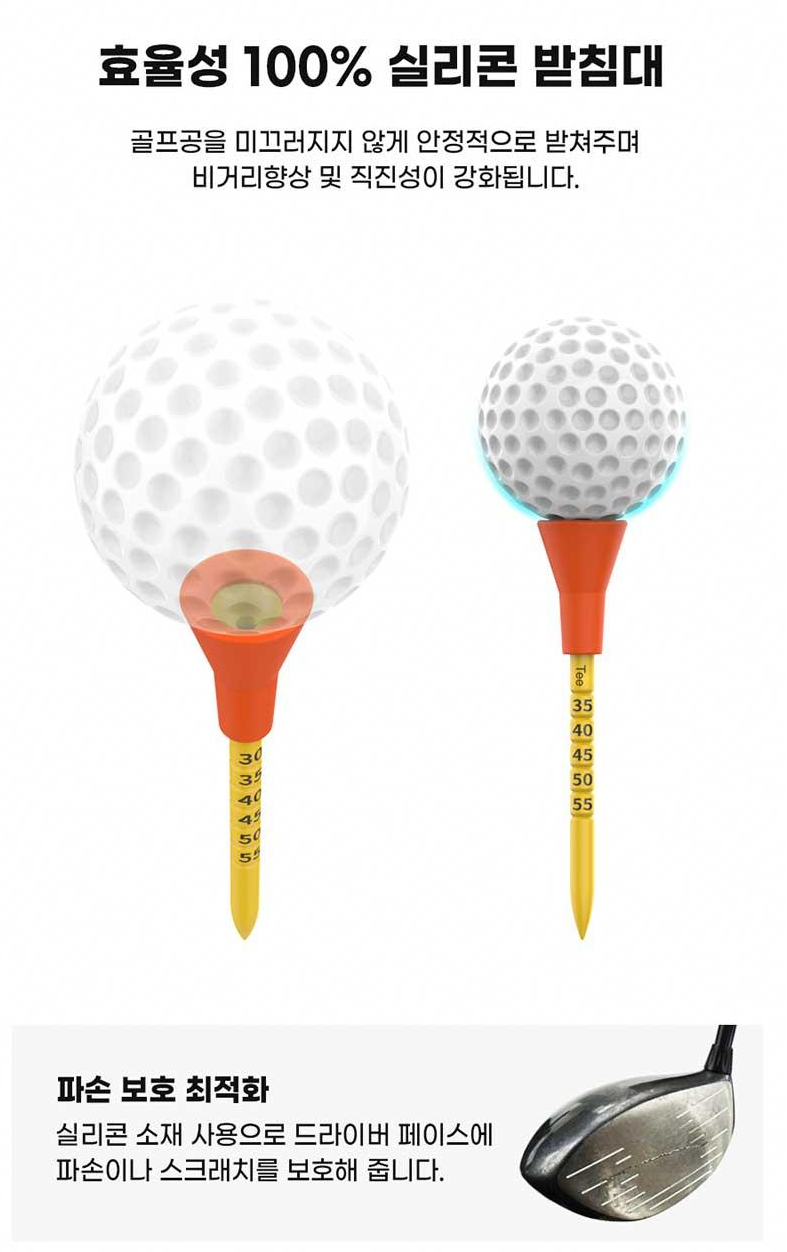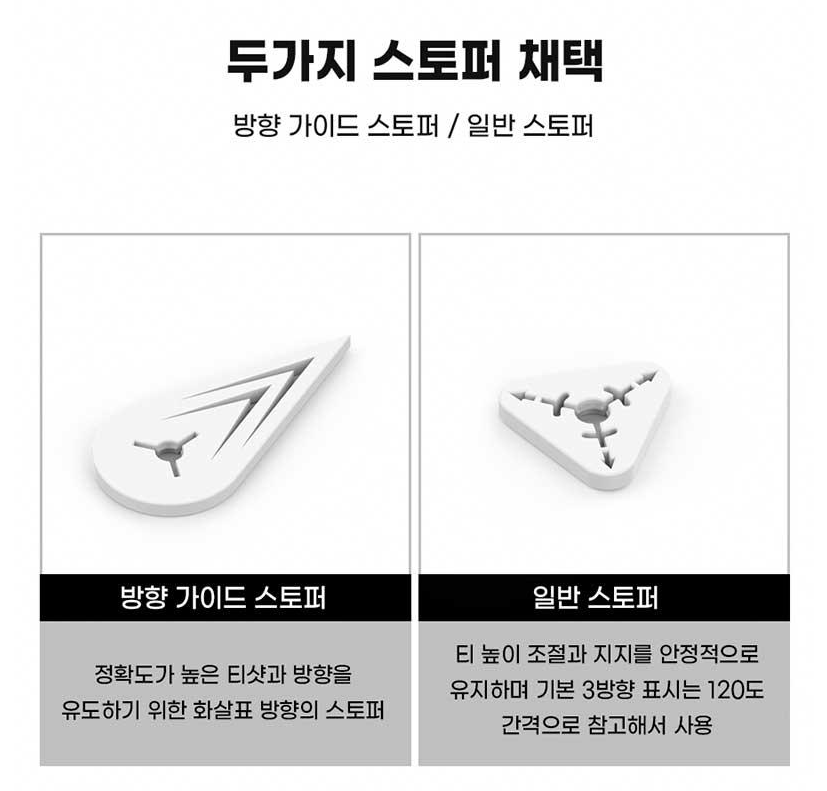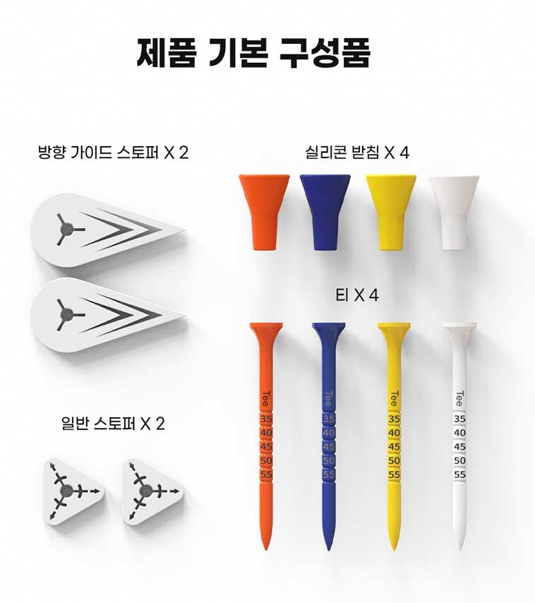 가장 눈에 띄는 특징은 바로 티높이 조절과 타구 방향성을 개선해주는 골프티꽂이 시스템입니다. 기존 골프티와 달리 타점별로 티높이를 정확하게 조절할 수 있어, 드라이버샷부터 아이언샷까지 상황에 맞는 최적의 높이 설정이 가능합니다. 타사 제품 대비 더 길어진 골프티는 다양한 클럽과 샷 상황에 유연하게 대응할 수 있게 해줍니다.