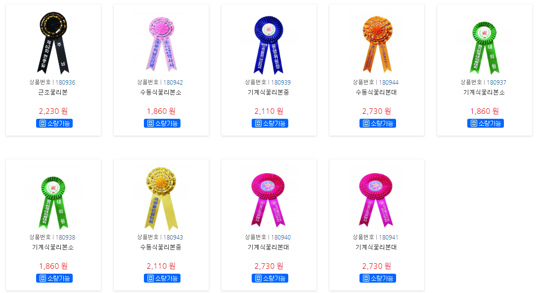 경축일, 기념일, 각종 행사에서 빠질 수 없는 것이 바로 행사리본입니다. 심쿵기프트는 다양한 색상과 디자인의 행사리본을 제공하여, 행사 분위기를 한층 돋보이게 합니다. 행사 참가자들은 이 리본을 가슴에 달고 행사에 참여함으로써, 행사의 일체감을 느낄 수 있습니다. 특별한 날의 특별함을 더하는 행사리본으로 소중한 순간을 더욱 빛내보세요.